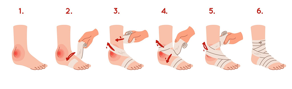This part is the most important for support. Begin at the top of the ankle and bring the coach sports tape across the front diagonally. Then, bring it back up to the side where it began. Do this again on both the long and short sides. It “locks” the heel in place.