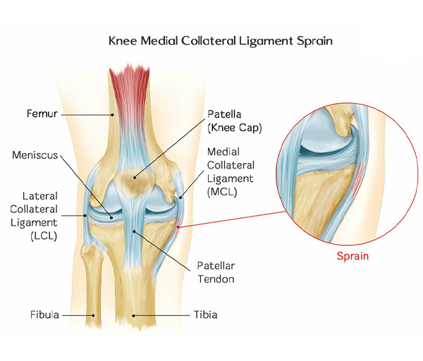 MCL injuries or sprains frequently occur during contact sports and sports requiring significant lower limb twisting (such as soccer, basketball, tennis, and skiing). Injuries caused by direct impact are more severe.
